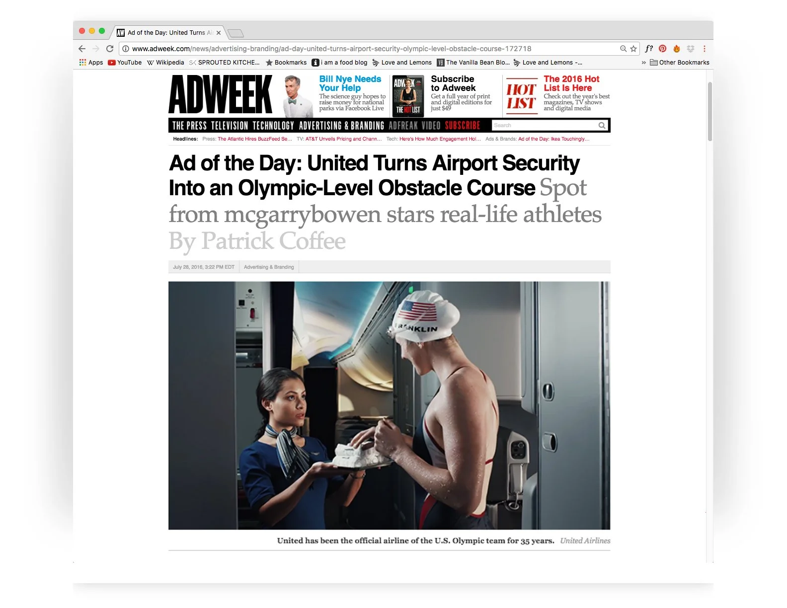United has been flying Team USA to every stop of their Olympic journey for over 35 years. To showcase this partnership we created an integrated campaign featuring both Team USA athletes and United employees.